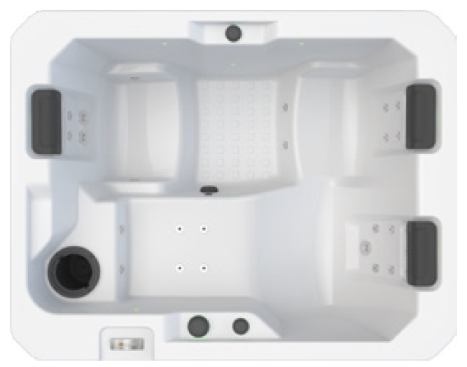 The Conesus spa delivers the ideal blend of intimacy and comfort, thanks to its design that comfortably seats three adults, including a soothing lounger. Despite its compact 5’6″ x 7′ size, this spa offers powerful performance and relaxation through its 32 strategically placed jets.